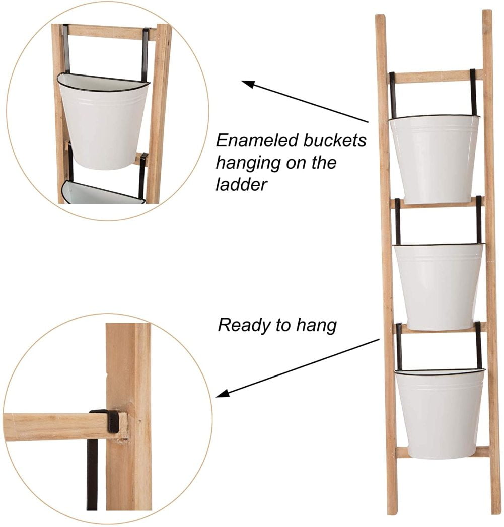 Taliaposy Outdoor Wood Ladder Plant Stand Vertical Tiered Planter Garden Plant Stand With Hanging Metal Buckets 42鈥滺 Herb Ladder Planter 4 Tier Plant Stand For Outdoor Garden Home Balcony Patio Walmart Com